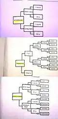 To the ample Mycenaean material at Knossos was added a new script and the confirmation of an old. In the "Room of the Chariot Tablets" some wooden boxes had been smashed open spilling a cache of inscribed, hardened clay tablets. This writing Evans termed "a linear form of script."[25] By that he meant to oppose it to another, more rarely testified script, which he called "hieroglyphic," defined as a "conventional pictographic class." He had previously been a student of Cretan signatories. He explained his new term by saying "Unlike the regular arrangement of the linear script in separate lines from right to left, these hieroglyphic characters ... present a much more jumbled aspect."[26]
