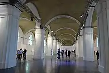 Mystetskyi Arsenal National Art and Culture Museum Complex, also known as Mystetskyi Arsenal (Ukrainian: Мистецький арсенал, translated as the «Art Arsenal») — is Ukraine's flagship public cultural institution, museum and an art exhibition complex located at Lavrska Street, 10–12, in Kyiv, Ukraine.[2] Total exhibition area of its historic venue is 60,000 m2, one of the largest in Europe. The institution's stated mission is to modernize Ukrainian society through raising awareness on social issues, fostering communication with the international community, introducing outstanding local and international artists to the world. The complex was visited by 173,550 visitors in 2018. It hosted 6 exhibitions, 2 festivals, 299 guided tours, 52 educational projects and 13 large scale theatrical productions the same year. The venue also hosts Ukraine's biggest annual book fair, attended by 50,000 visitors.[3] The complex is legally under the control of the State Management of Affairs.