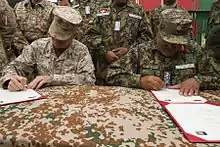 Each ANA HQ above battalion level has or had an embedded Operational Mentor and Liaison Team (OMLT) of NATO trainers and mentors acting as liaisons between ANA and ISAF. The OMLTs co-ordinate operational planning and ensure that the ANA units receive enabling support.[7] Pending on the readiness of each HQ, they go through a transition, following which the international mentor team leaves the ANA organisation.