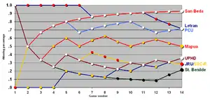 - All of Letran's wins were forfeited when a player was found to have played in a ligang labas game.