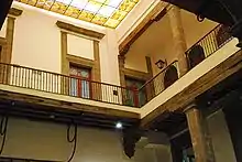 The tezontle stone façade of the current building dates from 1775, and at the peak above the main door is the coat of arms of the Count of Regla.[3] In the main doorway there is the coat of arms of Mexico and a bust of Don Pedro Romero de Terreros. The inside of the building has been completely modified except for a few details. The third floor was added in 1948.[4] What had been Cortés’s accounting room while he was the Marquis of the Valley of Oaxaca, became a chapel and remained so until 1926. Since then, it has been a museum, housing painting by José de Páez from 1775, building decorations from the 18th and 19th centuries, cancellation stamps, paper money and certificates from 1880 and the building's original statues.[1]