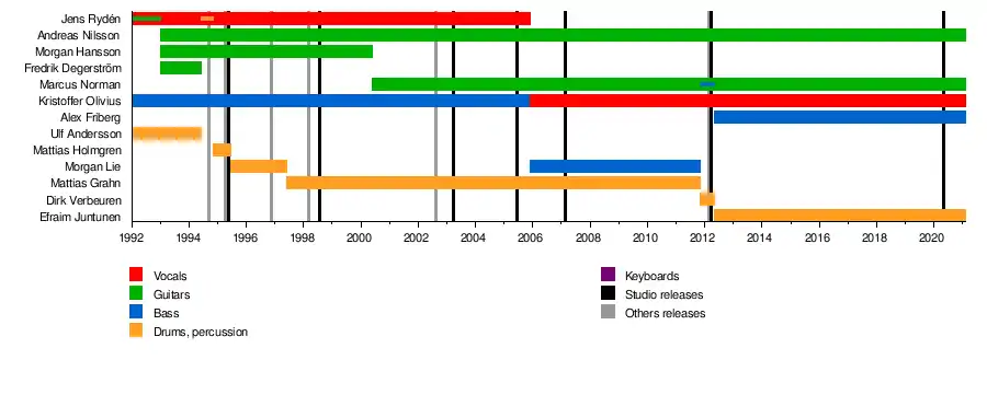 - Jens Rydén – lead vocals (1992–2005), guitars (1992–1993)
