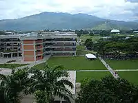 The Naguanagua (Spanish pronunciation: [naɣwaˈnaɣwa]) municipality is one of the 14 municipalities (municipios) that makes up the Venezuelan state of Carabobo and, according to the 2011 census by the National Institute of Statistics of Venezuela, the municipality has a population of 157,437.[1] The town of Naguanagua is the shire town of the Naguanagua Municipality.[2] It forms part of the greater Valencia Metropolitan Area in Venezuela. It is in the valley of the Cabriales River at the base of Cerro El Café and the El Trigal Mountain. Valencia and Naguanagua form a continuous urban area. The highway that runs from the centre of Valencia towards Puerto Cabello passes through this community; Bolivar Avenue in Valencia becomes University Avenue in Naguanagua on the northern side of a traffic roundabout, or redoma.