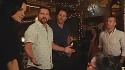 ![]() Rick Wright (Zachary Knighton) in a crossover appearance as his Magnum P.I. character. | |
