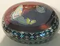 Namikawa Yasuyuki (1845–1927) — original family name Takaoka[1] — was a Japanese cloisonné artist. His work was highly sought after in his own lifetime and is held in several collections today.[2] He and Namikawa Sōsuke (no relation)[notes 1] were the most famous cloisonné artists of the 1890 to 1910 period, known as the "Golden age" of Japanese enamels.[3] From 1875 to 1915, he won prizes at 51 exhibitions, including at world's fairs and at Japan's National Industrial Exhibition.[4] For his work he was appointed an Imperial Household Artist in 1896.[3] He sometimes signed his pieces Kyoto Namikawa (Namikawa of Kyoto).[5]