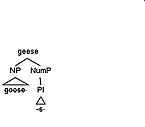 geese ↔ [PlP [NP GOOSE] Pl .