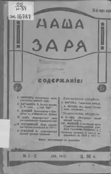 Nasha Zarya (Russian: Наша заря - meaning Our Dawn in English) was a legal Menshevik monthly, published in St. Petersburg, Russia from 1910 to 1914. Lenin described it as 'the liquidators' centre in Russia'.[1]