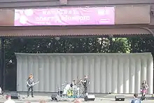 The National Sylvan Theater — often simply the Sylvan Theater — is a public sylvan theater on the grounds of the Washington Monument, National Mall, in Washington, D.C., USA. It is located within the northwest corner of the 15th Street and Independence Avenue intersection,[1][2] about 450 feet (137 m) southeast of the Washington Monument. A wooden stage is set in a graded depression surrounded by a grove of trees and appears as a sort of natural amphitheater integral to the historic greensward of the monument grounds. A gathering of 10,000 event attendees may stretch from the theater stage back to the base of the monument.[3] The Sylvan Theater was the first federally funded theater in the United States.[4]