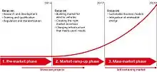 The NPE considers electric mobility as a total system of the components vehicle, energy supply, transport infrastructure and urban planning, which transcends the limits of traditional industry branches. This corresponds to the cross-sector and cross-disciplinary organization and operation of the NPE. The aim of the NPE is a self-sustaining market, which requires no political monetary support. To achieve the goals, the NPE recommends certain measures to the federal government and conducts regular reviews to their stage of development. The basis for their recommendations to support electric mobility is a three-phase model that reflects the different market stages.