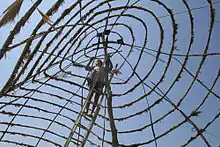 Nature Belle, a public artwork by American artist Roy Staab, was located in the middle of a round-about at the intersection of the Hank Aaron Trail and 25th Street, near Milwaukee, Wisconsin.[1] A site-specific sculpture constructed from natural local materials, the finished bell was supported by a box elder tree and was approximately 45 ft. in height and 35 ft. in diameter. Located in the center of a busy traffic circle, it was viewed mostly by passing motorists. Like most of Staab's ephemeral sculptures, the work is no longer extant.[2] It was completed on June 6, 2006 and destroyed by a storm on September 8, 2006.[3][4]
