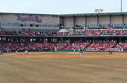 Hawks Field is often listed among the finest ballparks in college baseball. Its capacity is 8,500, with 4,500 seats and berms in the outfield. Hawks Field is the first collegiate venue to use the SubAir system to heat and cool the field year-round, and was selected as the best playing surface in the country in each of its first six years. In 2003 and 2007, Hawks Field won the Sports Turf Managers Association (STMA) Collegiate Baseball Field of the Year Award, the only park to win the award multiple times. Nebraska has ranked in the national top 25 in average attendance every year at Hawks Field.[19] An LED videoboard was installed in 2012 which nearly tripled the size and resolution of the ballpark's original video screen. The widescreen display is 17 feet tall and 34 feet wide.