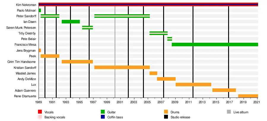 | Past members | Jens Brygman Paolo Molinari Peter Sandorff Peek Ian Dawn Grim Tim Handsome Søren Munk Petersen Kristian Sandorff Tormod Holm Tröy Deströy Wasted James Andy DeMize Pete Belair Lux Adam Guerrero |