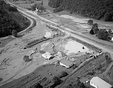 Flash floods and mudslides killed 153 people, 31 from Roseland, Tyro, and Massies Mill alone.[7] Over 133 public bridges were washed out in Nelson County, while some communities were under water.[8] In the tiny community of Davis Creek, 52 people were killed or could not be found; only 3 of 35 homes were left standing after the floodwaters receded.[7] The bodies of some people have never been found; others washed as much as 25 miles (40 km) downstream along the creeks and rivers. The entire county was virtually cut off, with many roads and virtually all bridges, telephone, radio, TV, and electric service interrupted.
