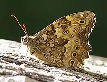 Neope goschkevitschii is a Nymphalidae butterfly found in East Asia. This species looks quite similar to Neope niphonica and these two species were treated as one for a long time.[1]