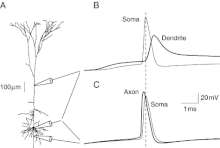 - Stuart, G; Spruston, N; Sakmann, B; Häusser, M (1997). "Action potential initiation and backpropagation in neurons of the mammalian CNS". Trends in Neurosciences. 20 (3): 125–31. doi:10.1016/s0166-2236(96)10075-8. PMID 9061867.