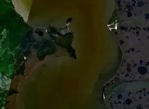 The Nevelskoy Strait is a "strait within a strait" in the Strait of Tartary, which connects the Sea of Japan and the Sea of Okhotsk between the island of Sakhalin and the Asian mainland in Northeast Asia. The Nevelskoy Strait connects the southern main body of the Strait of Tartary with the northern Amur Liman, the estuary of the Amur River. The Nevelskoy Strait is formed by the narrowest point between Sakhalian and the Asian mainland, and features a number of small capes and bays. Cape Lazarev, the largest cape, forms the narrow-most section of the Nevelskoy Strait as it projects towards Cape Pogibi.