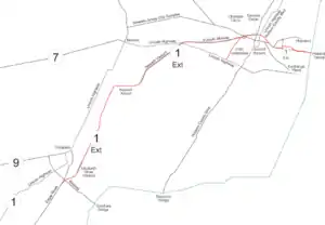 - Route 1, from the south border of Elizabeth via Rahway and Metuchen to the north border of New Brunswick, and from the south border of New Brunswick via Hightstown and Robbinsville to the east border of Trenton.