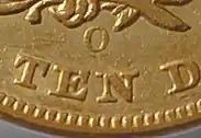 During this second period of operation, the Mint also struck dimes, quarters, half dollars, $5 half eagles, $10 eagles and, in 1879 only, 2,325 double eagles. It should also be noted that the New Orleans Mint was used by the Federal authorities in 1907 to coin over five and a half million silver twenty-centavo pieces for the Mexican government as part of the American government's program of producing foreign coinage. The New Orleans Mint, whose coins can be identified by the "O" mint mark found on the reverse of its coinage, earned a reputation for producing coins of a mediocre quality; their luster is usually not as brilliant as those of other mints, and center areas tend to be flattened and not sharply struck. Thus, well-struck New Orleanian coinage is prized in the numismatic world today.[31]