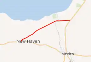 New York State Route 104B (NY 104B) is a 6.07-mile (9.77 km) east–west state highway located in central Oswego County, New York, in the United States. This highway provides a connection between NY 104, the principal highway along the southern shore of Lake Ontario, in New Haven and NY 3, the principal highway along the eastern shore of Lake Ontario, in the town of Mexico. It passes through mostly rural areas and acts as a two-lane bypass of the village of Mexico, located where NY 3 and NY 104 intersect southeast of NY 104B. All of NY 104B is part of the Seaway Trail, a National Scenic Byway. The route was originally New York State Route 3D in 1930. NY 3D was redesignated as New York State Route 3E c. 1932, and was redesignated NY 104B in April 1935.