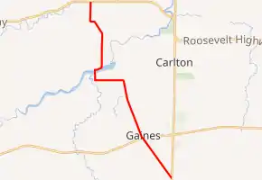 | Gaines | 0.00 | 0.00 | Southern terminus | ||