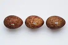 The New Zealand falcon nests in a scrape in grassy soil or humus in various locations: under a rock on a steep slope or on a rock ledge, among epiphytic plants on a tree branch, or under a log or branch on the ground,[7][8] or on bare ground,[9] making the two or three eggs that they lay vulnerable to predators such as stray cats, stoats, weasels, possums, and wild dogs.