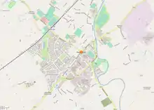 Newbridge, officially known by its Irish name Droichead Nua ([ˈd̪ˠɾˠɛçəd̪ˠ n̪ˠuə]), is a town in County Kildare, Ireland. While the nearby Great Connell Priory was founded in the 13th century, the town itself formed from the 18th century onwards,[2] and grew rapidly alongside a military barracks which opened in the early 19th century.[3][4] Taking on the name Newbridge (An Droichead Nua) in the 20th century, the town expanded to support the local catchment,[5] and also as a commuter town for Dublin.[6][7] Doubling in population during the 20 years between 1991 and 2011,[8] its population of 22,742 in 2016[1] makes it the largest town in Kildare and the fifteenth-largest in Ireland.