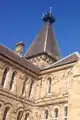 Expanding student numbers meant that more extensive premises closer to the city were required. A bequest by John Jones of land at Stanmore saw the College move to the newly fashionable inner-city suburbs. A grand stone edifice was designed by Thomas Rowe and has been described by architectural historian Morton Herman as 'an almost perfect example of scholastic Gothic Revival architecture'.[15] The Thomas Rowe-designed Founder's Building, including its interior and surrounding grounds, are listed on the heritage register of the former Marrickville Council.[16] Earth-moving work began on the site in 1876 and by May 1878 the building had reached first floor height. A public ceremony was held and six commemorative stones were laid. Amongst the six given the honour of laying the stones were Sir George Wigram Allen KCMG,[17] the philanthropist who was Speaker of the New South Wales Legislative Assembly. He had lent A£12,000 for the new buildings at Stanmore and later endowed the Wigram Allen Scholarship for boys proceeding to matriculation. The formal opening of the new school building was by Sir George on 18 January 1881. By resolution of the College Council, the name Newington College was perpetuated on the new site. Seventy school and theological students migrated from Silverwater to Stanmore and Newington has remained there ever since.[18]