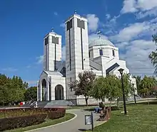 ![]() ![]() ![]() ![]() ![]() ![]() ![]() ![]() From top: Panoramic view of Niš, Niš Fortress, Bubanj Memorial Park, Monument on Čegar, Nišava river, Palace of Justice, Church of the Holy Emperor Constantine and Empress Helena, University of Niš | |