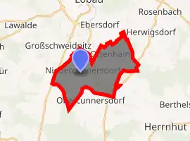 Niedercunnersdorf is a former municipality in the district Görlitz, in Saxony, Germany. With effect from 1 January 2013, it has merged with Eibau and Obercunnersdorf, forming the new municipality of Kottmar.[1]
