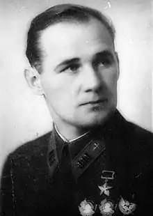 Nikolai Ivanovich Vlasov (Russian: Николай Иванович Власов; 11 November 1916 – 26 January 1945) was a flying ace, lieutenant colonel of the Soviet Air Forces, and a Hero of the Soviet Union. On 29 July 1943 his Yak-1 fighter was shot down over Leningrad by anti-aircraft fire from the ground. After being taken captive he led underground resistance efforts in the various concentration camps he was held in and managed to make multiple escape attempts. After one escape attempt he was sent to Mauthausen where he made preparations for a prisoner uprising. However, he did not live to participate in the prison revolt as he had been betrayed by another prisoner and held under close watch of the SS. After being tortured by the SS he was thrown alive into a crematorium furnace on 26 January 1945 as Allied troops were approaching the area. Several of his fellow prisoners went on with the uprising after his death, hence on 3 February 1945 roughly 500 prisoners from his block broke through a fence and escaped.