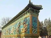 A Nine-Dragon Wall or Nine-Dragon Screen (九龙壁; pinyin: Jiǔ Lóng Bì) is a type of screen wall with reliefs of nine different Chinese dragons. Such walls are typically found in imperial Chinese palaces and gardens.