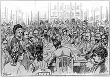 By the 1890s, suffrage leaders began to recognize the need to broaden their base of support to achieve success in passing suffrage legislation at the national, state, and local levels. While western women, state suffrage organizations, and the AWSA concentrated on securing women's voting rights for specific states, efforts at the national level persisted through a strategy of congressional testimony, petitioning, and lobbying.[30][31] After the AWSA and NWSA merged in 1890 to form the National American Woman Suffrage Association (NAWSA), the group directed its efforts to win state-level support for suffrage.[32] Suffragists had to campaign publicly for the vote in order to convince male voters, state legislators, and members of Congress that American women wanted to be enfranchised and that women voters would benefit American society. Suffrage supporters also had to convince American women, many of whom were indifferent to the issue, that suffrage was something they wanted. Apathy among women was an ongoing obstacle that the suffragists had to overcome through organized grassroots efforts.[33] Despite the suffragists' efforts, no state granted women suffrage between 1896 and 1910, and the NAWSA shifted its focus toward passage of a national constitutional amendment.[32] Suffragists also continued to press for the right to vote in individual states and territories while retaining the goal of federal recognition.[28]