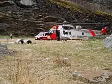 Search and rescue was at the time only a secondary role for various air force units, such as the Albatross, Bell UH-1B and Bell 47. Norway lacked the dedicated SAR service that Denmark had. This became evident in 1966, when the Norwegian ferry Skagerrak sank off the Danish coast in September 1966. Everyone on board was saved, but it was questioned whether this would have been the case if the incident had occurred in Norwegian waters.[52] The task was given to the Ministry of Justice, who as a temporary solution from 1968 to 1973 signed an agreement with Helikopter Service to operate two Sikorsky S-61 out of Sola and Bodø.[53]