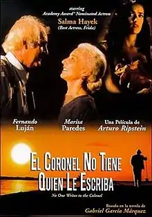No One Writes to the Colonel (Spanish: El coronel no tiene quien le escriba) is a 1999 Spanish-language film directed by Arturo Ripstein. It was an international co-production between France, Spain and Mexico. It is based on the eponymous novella by Colombian author and Nobel Prize winner Gabriel García Márquez.