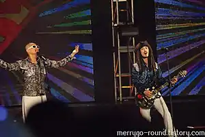 Norazo (hangul: 노라조) is a musical male duo from South Korea, known for their eccentric stages and comical lyrics.[1] The two original members were Jo Bin and Lee Hyuk. They were also participants in the musical variety show, Immortal Songs.[2] The duo debuted in 2005.[3] After Lee Hyuk's departure from the group vocalist Won Heum joined as the new member.[4]