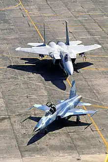 The F-5 was also adopted as an opposing forces (OPFOR) "aggressor" for dissimilar training role because of its small size and performance similarities to the Soviet MiG-21. In realistic trials at Nellis AFB in 1977, the F-14 reportedly scored slightly better than a 2:1 kill ratio against the simpler F-5, while the F-15 scored slightly less.[49][50][51][52] There is some contradiction of these reports, another source reports that "For the first three weeks of the test, the F-14s and F-15s were hopelessly outclassed and demoralized"; after adapting to qualities of the F-5 and implementing rule changes to artificially favor long range radar-guided missiles, "the F-14s did slightly better than breaking even with the F-5s in non-1 v 1 engagements; the F-15s got almost 2:1".[53] A 2012 Discovery Channel documentary Great Planes reported that in USAF exercises, F-5 aggressor aircraft were competitive enough with more modern and expensive fighters to only be at small disadvantage in Within Visual Range (WVR) combat.[54]