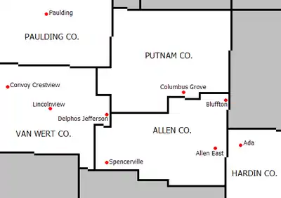 The Northwest Conference is an OHSAA athletic league located in northwest Ohio and includes schools in Allen, Hardin, Paulding, Putnam, and Van Wert counties. The NWC originally formed in 1947. The Northwest Conference currently awards championships in 10 Varsity sports: baseball, basketball, cross country, football, golf (boys), softball, soccer (girls), track, volleyball, and wrestling.