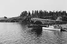 To start the route from Oslo to Bergen immediately, a Ju 52 was wet leased from Lufthansa. It was delivered on 7 June and initially kept the blue Lufthansa livery, including a swastika. The aircraft was registered as LN-DAE, christened Havørn and later received DNL's livery. Operations were scheduled to commence on 7 June, but fog forced a delay until 11 June. After that there were flown 180 trips with a 100% regularity. Training was done by German crew on board Havørn. Travel time from Oslo to Bergen was four and a half hours, with intermediate stops in Moss, Arendal, Kristiansand, Stavanger and Haugesund. It cost NOK 95 to fly the full journey. During the first season, DNL transported 3,214 passengers and 31.6 tonnes (31.1 long tons; 34.8 short tons) of mail. It also took over Norwegian representation for Aerotransport, DDL, KLM, Sabena, Air France and Aero, and joined the International Air Traffic Association. At the end of the year, Havørn was purchased. On 6 June 1936, DNL registered its second Ju 52, LN-DAF Najaden. After the Havørn Accident eleven days later, the airline purchased another Ju 52, LN-DAH Falken, used from Lufthansa.[12]