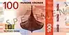 100 kr | 133 × 70 | Red | Gokstad ship | Stylized Container ship and Orion | 2017 | ||