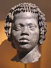 The linguistic affinities of early Nubian cultures are uncertain. Some research has suggested that the early inhabitants of the Nubia region, during the C-Group and Kerma cultures were speakers of languages belonging to the Berber and Cushitic branches respectively, of the Afroasiatic family. More recent research instead suggests that the people of the Kerma culture spoke Nilo-Saharan languages of the Eastern Sudanic branch, and that the peoples of the C-Group culture to their north spoke Cushitic languages.[18][19][20][21] They were succeeded by the first Nubian language speakers, whose tongues belonged to another branch of Eastern Sudanic languages within the Nilo-Saharan phylum.[22][23] A 4th-century victory stela commemorative of Axumite king Ezana contains inscriptions describing two distinct population groups dwelling in ancient Nubia: a "red" population and a "black" population.[24]