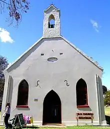 Nundle was established at the foot of the Great Dividing Range when gold was discovered at "The Hanging Rock" and nearby Swamp Creek in 1852. By June 1852 there were 300 diggers on the fields at Oakenville Creek.[3] Prospectors from California, Europe and China were also digging along the Peel River and up the mountain slopes. By 1865 the population was around 500 with about 50 businesses in operation. A public school was completed during December, 1871 and lessons commenced there in 1872.[4] Nundle was declared a town in 1885. In 1924 the Peel River Bridge was constructed and in 1941 electricity was connected to the town. During 1966 the swimming pool was opened by the Rt Hon. Ian Sinclair. The population of Nundle Shire was 1350 in 1969. In 1979 Premier Neville Wran opened the newly completed Chaffey Dam. Sheep, cattle and timber are the economic mainstays of this village nowadays.