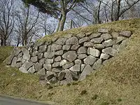 Later, Date Masamune used the castle as a base for attacking the Hatakeyama clan, and stayed in this castle until August 1586. After a while, Sadatsuna surrendered to Masamune and became one of his retainers. In 1591, Gamō Ujisato took control of Shiomatsu, and assigned Gamō Chūzaemon as castellan and lord of a 25,000 koku domain. The surviving stone wall at the present-day ruins of the main castle is from this time. The Gamō were subsequently displaced by the Uesugi clan during which time Yamaura Kagekuni became castellan.