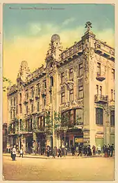 In 1795 Khadjibey was officially renamed as Odessa after a Greek colony of Odessos that supposedly was located in the area.[12][18] In reality it was located at the mouth of Tylihul Estuary (liman).[12] The first census that was conducted in Odessa was in 1797 which accounted for 3,455 people.[12] Since 1795, the city had its own city magistrate, and since 1796 a city council of six members and the Odessa Commodity Exchange.[12] In 1801 in Odessa had opened the first commercial bank.[12] In 1803 the city accounted for 9,000 people.[18]
