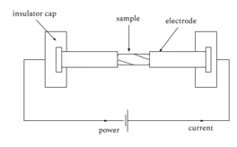 The generator creates the electrical current which flows to the first electrode and passes through the food product placed in the electrode gap.[2] The food product resists the flow of current causing internal heating.[3] The current continues to flow to the second electrode and back to the power source to close the circuit.[2] The insulator caps around the electrodes controls the environment within the system.[2]