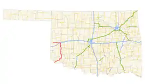 | Beckham–Roger Mills county line | | 121.8 | 196.0 | Northern terminus; road continues west as SH-152 (1100 Road) | ||||