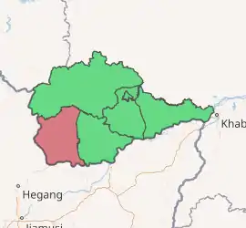Oktyabrsky District (Russian: Октя́брьский райо́н) is an administrative[1] and municipal[5] district (raion), one of the five in the Jewish Autonomous Oblast, Russia. It is located in the west and southwest of the autonomous oblast. The area of the district is 6,400 square kilometers (2,500 sq mi).[2] Its administrative center is the rural locality (a selo) of Amurzet.[1] Population: 11,354 (2010 Census);[3] 13,095 (2002 Census);[8] 15,599 (1989 Census).[9] The population of Amurzet accounts for 44.5% of the district's total population.[3]