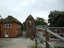 | Markings / pattern | unpainted red brick tower with thatched roof |