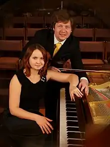 In 2005 together with the pianist Natalia Bezuglova he formed the Instrumental Duo Class&Jazz. The ensemble repertoire combines classical music pieces with jazz masterpieces.[5] The group became a winner of several International Competitions in classical music including the First Prize at the 1st Dmitri Shostakovitch International Competition of Chamber Ensembles and Piano Duos (Moscow, Russia 2008);[6][7][8] and the Third Prize and Bronze Medal at the 7th International Chamber Music Ensemble Competition in New England (Boston, MA 2016).[3] Class&Jazz has performed at manymusic festivals worldwide, including 16th International Brahms Festival in Pörtschach am Wörthersee (Austria, 2009), 3rd Festival of Contemporary Music "Rostov Premieres" (Russia, 2006),[9] Moscow musical festival of forum "Klassika" (Russia, 2009),[10] and 4th International Festival "Odessa Dialogues" (Ukraine, 2009).[11][12] In 2009 the duo started the chamber music festival "Christmas Premieres" in their native city of Rostov-on-Don, Russia.[13][14][15] They were the authors and performers of the original concert project Music and War, which premiered in Russia in 2009.[16][17] Class&Jazz Duo produced two CD-albums. Their recording of Shostakovich and Beethoven violin and piano sonatas, published in September 2013, was critically acclaimed by Phoenix Classical for “excellent performance – very expressive and emotive – precise intonation and technique – great balance with the piano – deeply poetic playing”.[2]