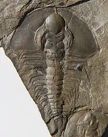 Olenellus is an extinct genus of redlichiid trilobites, with species of average size (about 5 centimetres or 2.0 inches long). It lived during the Botomian and Toyonian stages (Olenellus-zone), 522 to 510 million years ago, in what is currently North-America, part of the palaeocontinent Laurentia.[4]