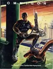 Omnigon is a science-fiction role-playing system.[1] Characters can be human or one of five alien races (animal-based humanoids - lizard people, cat-people, etc.).[1] There are six character classes: warrior, rogue, infiltrator, scout, Psionicist, and alpha knight (warriors with some psionics).[1] Character class chosen dictates what skills are available.[1] The game includes combat rules, equipment, and five levels of psionic abilities.[1]